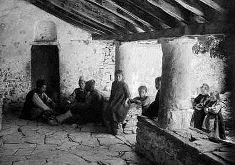Η μάνα φορτώθηκε στην πλάτη τη φλοκάτη και μετά κάθισε στο πεζούλι της βρύσης για να ανέβω πάνω στη φλοκάτη και πήραμε την κατηφόρα για το χωριό.